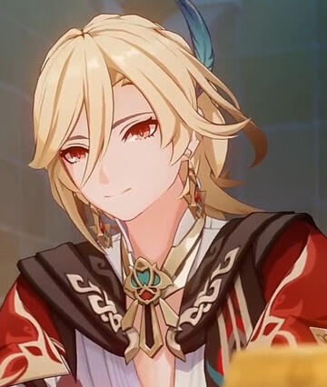 Zaine is a cheerful kid, and despite the fact that he only moved to Korea when he was ten, he has a large number of friends due to his sunny disposition and good looks.Zaine has distinct, medium length dirty blonde hair and sharp eyes with red irises. His hair hangs down the back of his head, complimented with some red hair clips holding his hair, and a slight braid. On Zaine's left, he wears a blue feather tucked under one of his hair strands and above his ear. He also sports a pair of golden, angular ear ornaments with small red and blue squares inside of them.